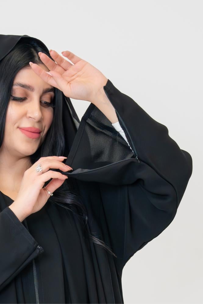 • راحة عملية: عباية بجيوب مخفية وسحاب أمامي لسهولة الحركة واللبس